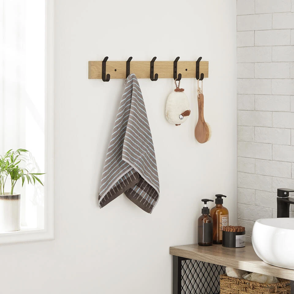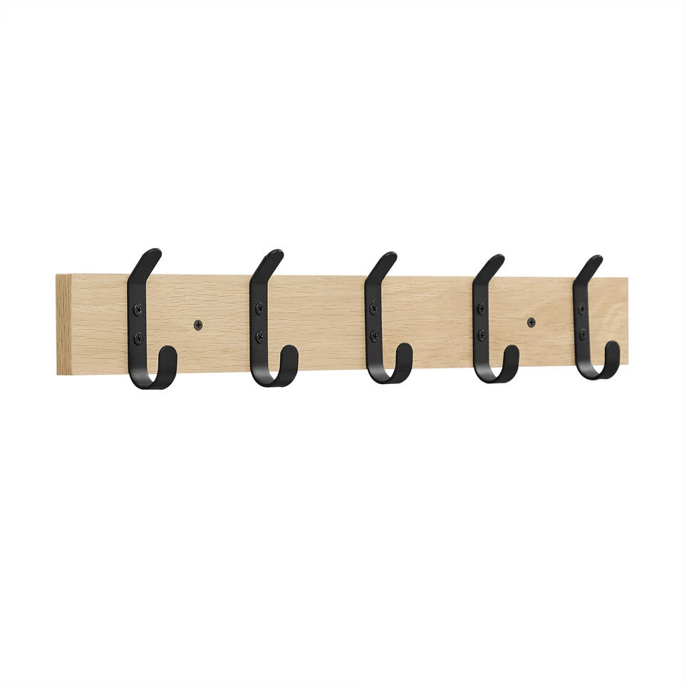 ACAZA Langwerpige Kapstok Met 5 Dubbele Haken, Lichte Eik Kleur
