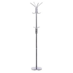 Vrijstaand, stabiele kapstok van verchroomd staal. Eenvoudig maar briljant! Je kunt alle jassen, hoeden of sjaals ophangen aan de 12 praktische haken van deze kapstok, en zo je garderobe opruimen. Bovendien zal het kledingrek zich ook bewijzen in de slaapkamer, waar het je favoriete kleding prachtig presenteert. Dankzij het heldere ontwerp heb je altijd alles in het zicht en bij de hand. De kapstok past ook bijzonder goed bij kleine ruimtes, waarbij een vrije hoek optimaal wordt gebruikt.