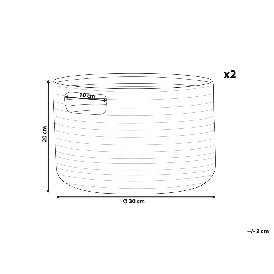 Set van 2 gevlochten opbergmanden. Deze set van twee manden is een handige accessoire dat je helpt om elke ruimte opgeruimd en georganiseerd te houden. Handgemaakt van katoen, de manden voelen prettig aan en je kunt ze zelfs in een kleine ruimte zetten. Met de handgrepen verplaats je ze gemakkelijk van plek naar plek, bijvoorbeeld bij het doen van de was. Gebruik ze om je kledingkast te ordenen, spullen te verstoppen of speelgoed op te bergen in een kinderkamer. Om een hygiënisch gebruik te garanderen, kunnen de manden in de wasmachine worden gewassen.