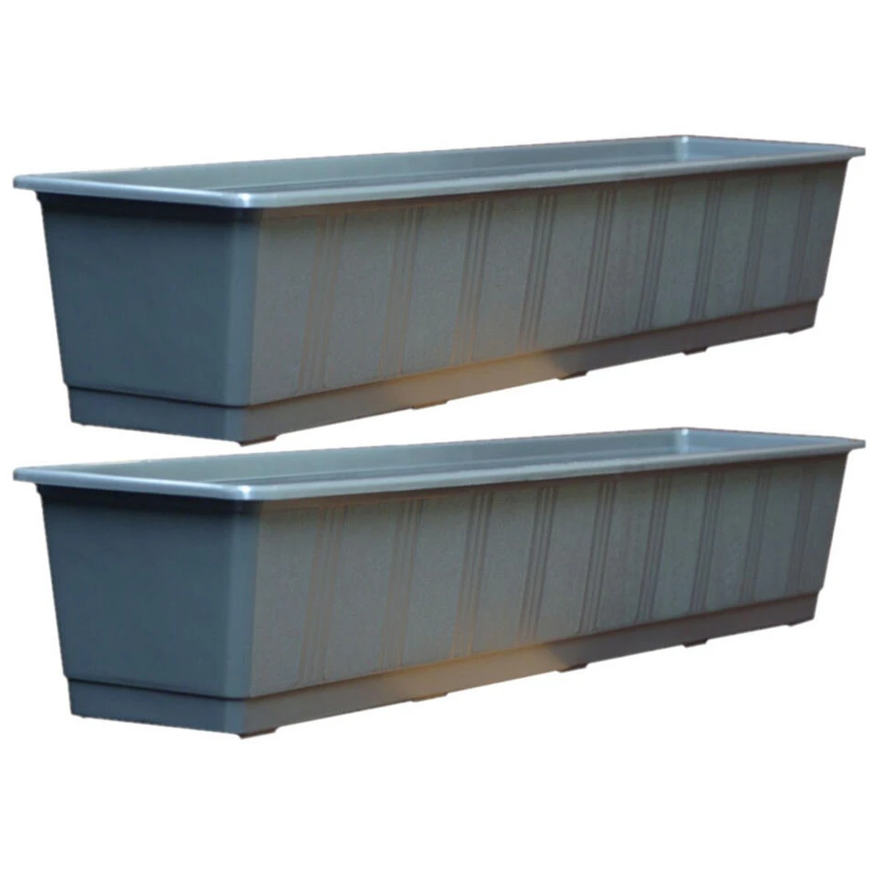 Plantenbak antraciet grijs rechthoekig 80 x 17,5 x 14,5 cm. Materiaal: polypropyleen (plastic/kunststof). Bloembakken/plantenbakken/plantenpotten voor binnen en buiten.