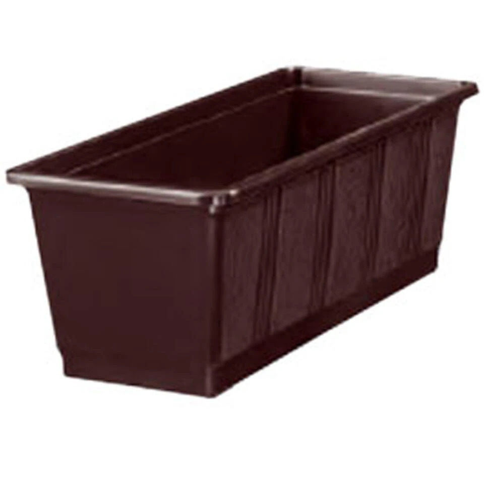 Plantenbak bruin rechthoekig 60 x 17,5 x 14,5 cm. Materiaal: polypropyleen (plastic/kunststof). Bloembakken/plantenbakken/plantenpotten voor binnen en buiten.