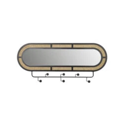 Giga Meubel Spiegelkapstok Zwart – Hout & Webbing – Kapstok Aida