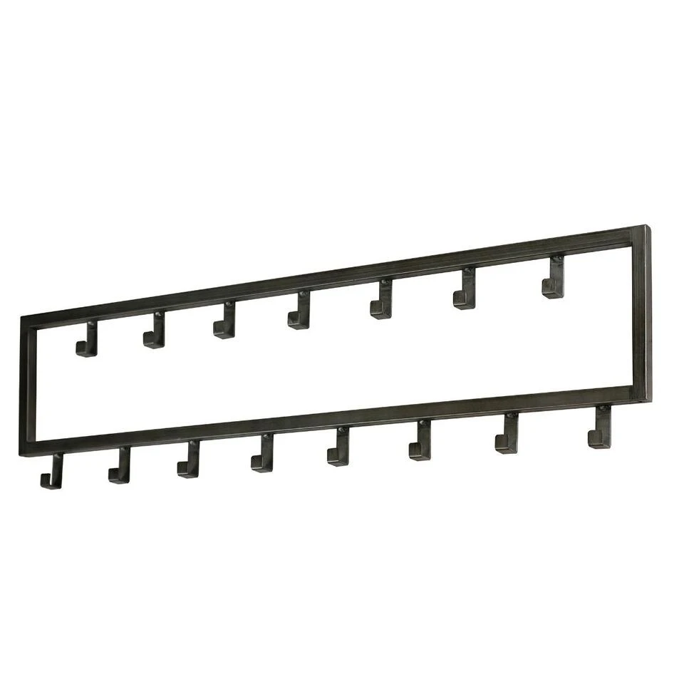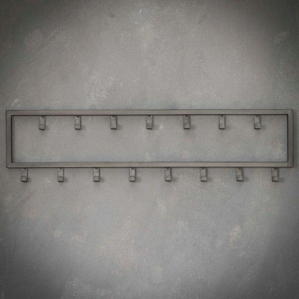 De kapstok industrieel 15 haken – 80 cm past dankzij zijn ontwerp perfect binnen een industriële, stoere of moderne inrichting. Hij is in zijn geheel gemaakt van gepoedercoat staal en heeft een grijze afwerking gekregen. Deze variant bestaat uit 15 haakjes die verdeeld zijn over twee rijen. Hierdoor is er genoeg ruimte voor verschillende jassen, sjaals en andere accessoires. De kapstok is voorzien van twee oogjes aan de achterkant om de kapstok mee te bevestigingen. Het bevestigingsmateriaal wordt niet meegeleverd omdat verschillende wandmaterialen vragen om verschillende soorten wandbeslag. Kapstok industrieel 15 haken is licht van gewicht en daardoor gemakkelijk te bevestigen.