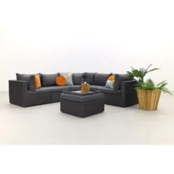 Tectake – Loungeset Met Tafel – Incl. 2 Overtreksets – Zwart