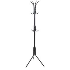 Een zwarte staande 3-poots kapstok, met een totale hoogte van ca. 172 cm. Aan de bovenkant is ruimte voor 8 jassen en in het midden kunnen bijvoorbeeld 4 kinderjassen of tassen hangen. Met anti-slip nopjes, zodat de kapstok niet verplaatst en de vloer beschadigd. Materiaal: Metaal met kunststof nopjes.