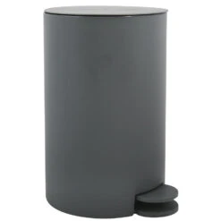 Pedaalemmer voor badkamer en toilet, klein model met inhoud 3 liter, kleur donkergrijs. Deze prullenbak is gemaakt van kunststof(polypropyleen) en heeft een formaat van ca. L15 x H27 cm. Deze kleine pedaalemmers hebben een uitneembare binnenbak. De deksel heeft dezelfde kleur. Robuust en makkelijk te legen. Afvalemmers, pedaalemmers en prullenbakken.
