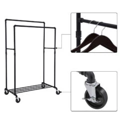 5Five Kledingrek 2x Enkele Stang – Kunststof – Zwart – 162 X 168cm