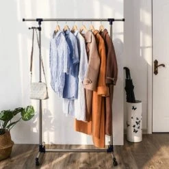 ACAZA Mobiel Kledingrek – Verstelbaar – 2 Rails – Zilvergrijs