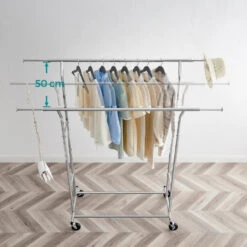 O’DADDY® Kledingrek Op 4 Grote Wielen – Tot 130 Kg Stabiel – RVS