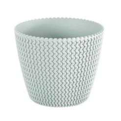 1x Kunststof Splofy bloempotten/plantenpotten wit 30 cm. Kras en stootvaste bloempot/plantenpot met de uitstraling van zachte, grof gebreide wol. Formaat: diameter bovenkant: ca 29,5 cm. Hoogte: ca. 24,9 cm. Materiaal: kunststof. De potten zijn geschikt voor binnen en buiten gebruik.