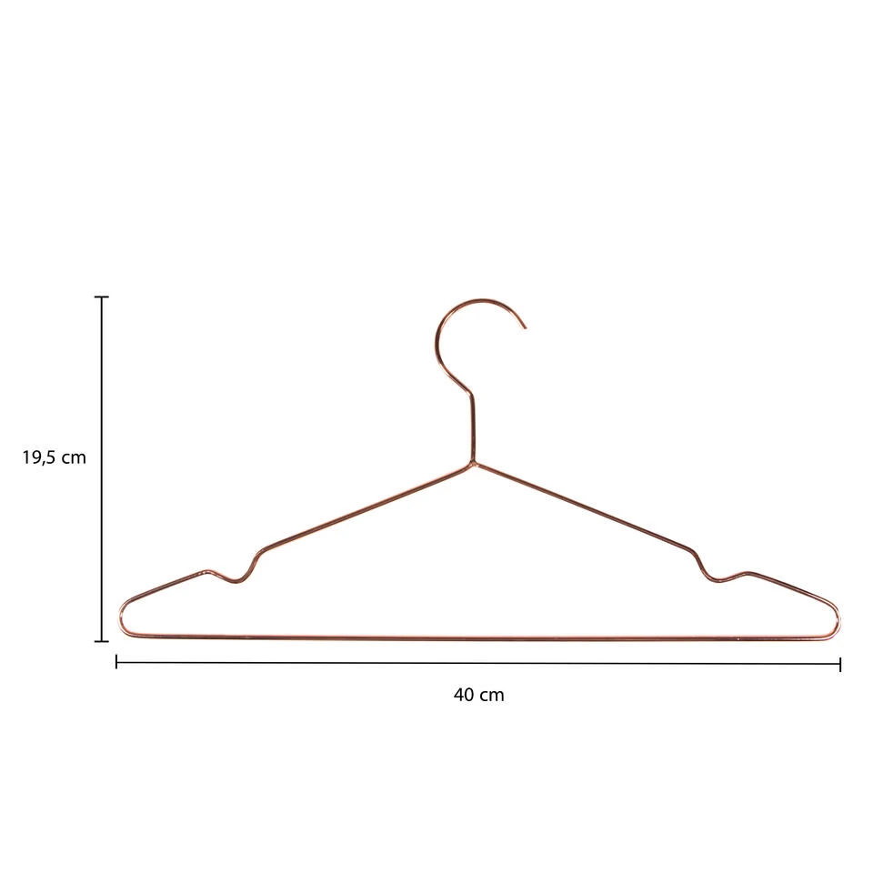 De koperkleurige kledinghangers van QUVIO hebben een klassiek uiterlijk. De stalen kleerhangers zijn minimalistisch vormgegeven en zien er hierdoor strak uit. Door het design blijft kleding goed op de hangers hangen. Zo kun je de kleerhangers in jouw kledingkast gebruiken, maar komen ze ook in de hal aan de kapstok van pas. In een set kledinghangers zitten 10 hangers, waardoor je meteen meerdere kledingstukken op kunt hangen.