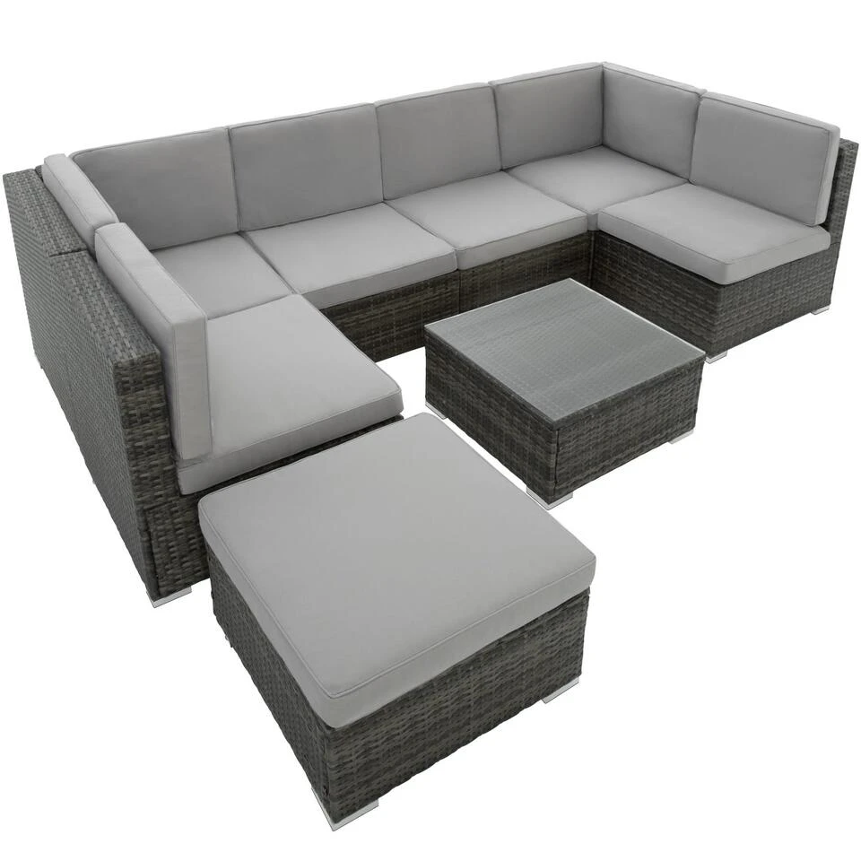 Wat denkt u ervan om de dag te starten met een stijlvol ontbijt in de natuur? Met de hoogwaardige ratan zitgroep van TecTake brengt u behaaglijk wooncomfort in uw tuin. De aantrekkelijke vlechtlook en de verwijderbare zitbekledingen zijn qua kleur perfect op elkaar afgestemd en kunnen moeiteloos gereinigd worden. De aparte elementen van de set kunnen naar wens en behoefte gecombineerd worden. De vlakke tafel op zithoogte met verwijderbaar blad van massief veiligheidsglas is het centrale punt van de meubelgroep. De stabiele constructie van roestvrij stalen schroeven en weerbestendig polyratan is perfect geschikt voor gebruik in open lucht. Beleef uiterst natuurgenot met de comfortabele ratan zitgroep van TecTake.