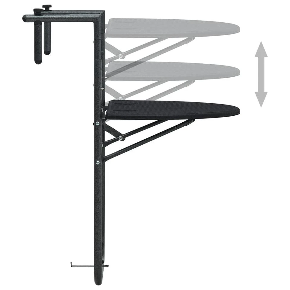 Het tafelblad is gemaakt van duurzaam kunststof, waardoor het weerbestendig en eenvoudig schoon te maken is. Het ontwerp met rattan-look geeft een vleugje natuurlijke charme aan je balkon. De tafel heeft een stevig stalen frame dat de tafel zeer stabiel maakt. De hoogte is in 3 standen verstelbaar.