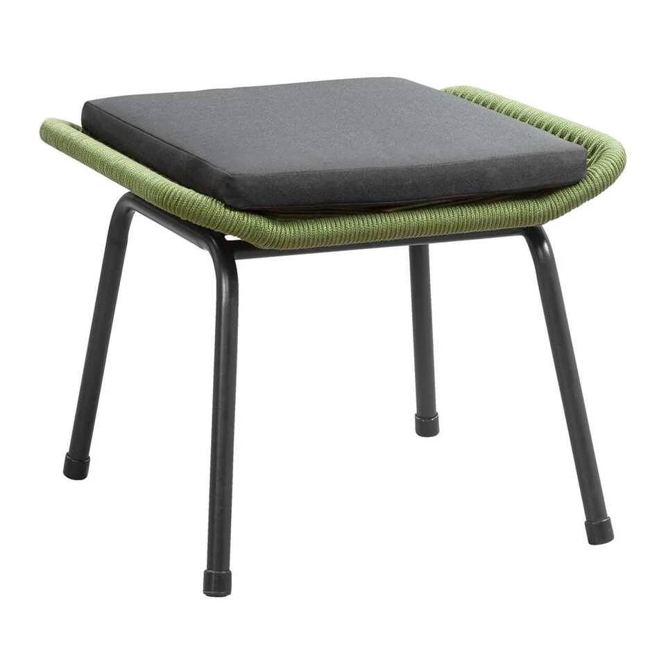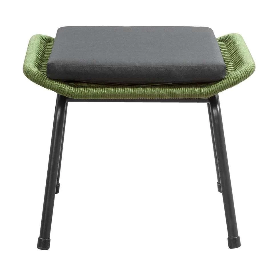 Voetenbankje Monaco is een comfortabel en trendy voetenbankje vervaardigd uit metaal en rope. Dit groene voetenbankje uit de Monaco serie wordt geleverd inclusief comfortabel zwart kussen voor ultiem zitcomfort. De afmeting is 47x42x38 cm. Loungevoetenbankje Monaco is een stijlvol en elegant voetenbankje. De combinatie van de materialen metaal met rope zorgt voor een moderne, maar ook stoere uitstraling.