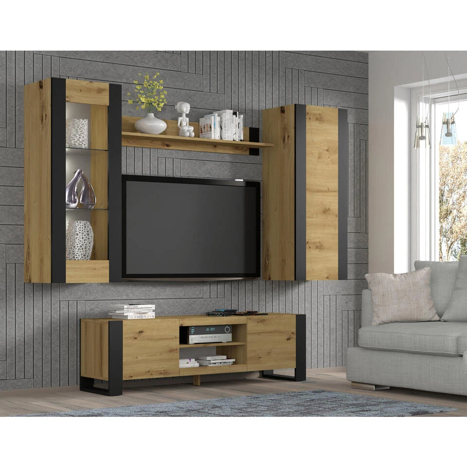 Praktische hangende plank. De plank is een geweldige aanvulling op de collectie woonkamermeubels. Zwarte contrasterende stroken aan de zijkanten zorgen voor veel charme.